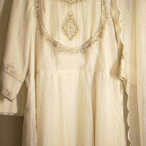 "Obsessed with my new Anarkali! The pearl detailing is even more stunning in person. I received so many compliments at the wedding last night. Thank you, @HeenaKhurana!